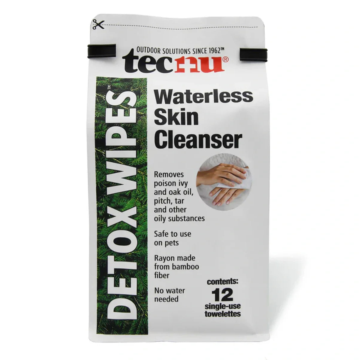 Tecnu Detox Wipes pack trail-ready protection into 12 individually wrapped towelettes that slip easily into a pack or pocket. Each cloth is saturated with a cleanser powered by d-limonene, a natural solvent extracted from orange oil, that breaks the bond between urushiol and your skin so the rash never gets a chance to appear.